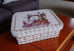 Košík s motivem šicí stroj. Velikost 20x29 cm.