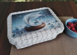 Košík s víkem s motivem list, velikost 18x25 cm, výška cca 11 cm.