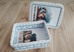 Košík s víkem 18x25 cm s motivem Jorkšíra.